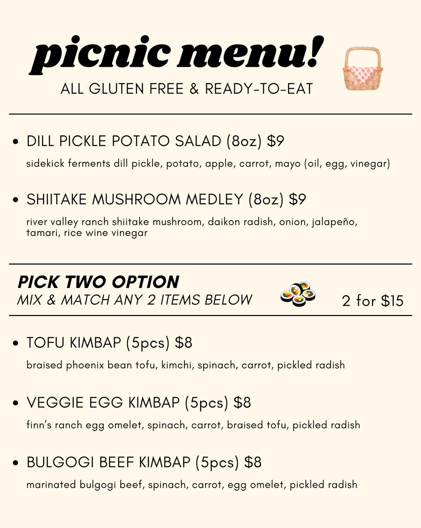 Pick up a jar of your favorite fermented veggies, or take home a delicious roll of freshly made kimbap at our farmer’s market booths!